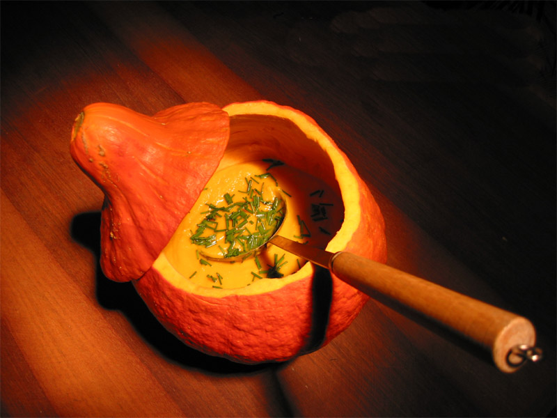 Kürbissuppe im Kürbis - verwandeln Sie den Kürbis "ruck-zuck" in eine Suppenschüssel ! ![]() |